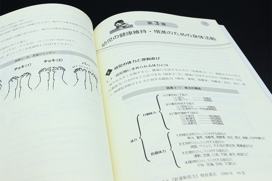 本書の特徴として、図表を多く取り入れ、難しい漢字には「ルビ」・語句には「注釈」・特に押さえておくとよい事柄などには、「POINT」などの枠を設け、専門知識が無くても理解しやすいように配慮されている。また、遊びの展開例の中に言葉かけも記載し、実践しやすい内容となっている。ならびに、最新の研究として「運動が苦手」、「ふらふらしていてよくこける」、「集中力がなくじっとしていられない」などの子どもの症状を「見る力」を高めることで改善が期待できるビジョントレーニングについても紹介している。